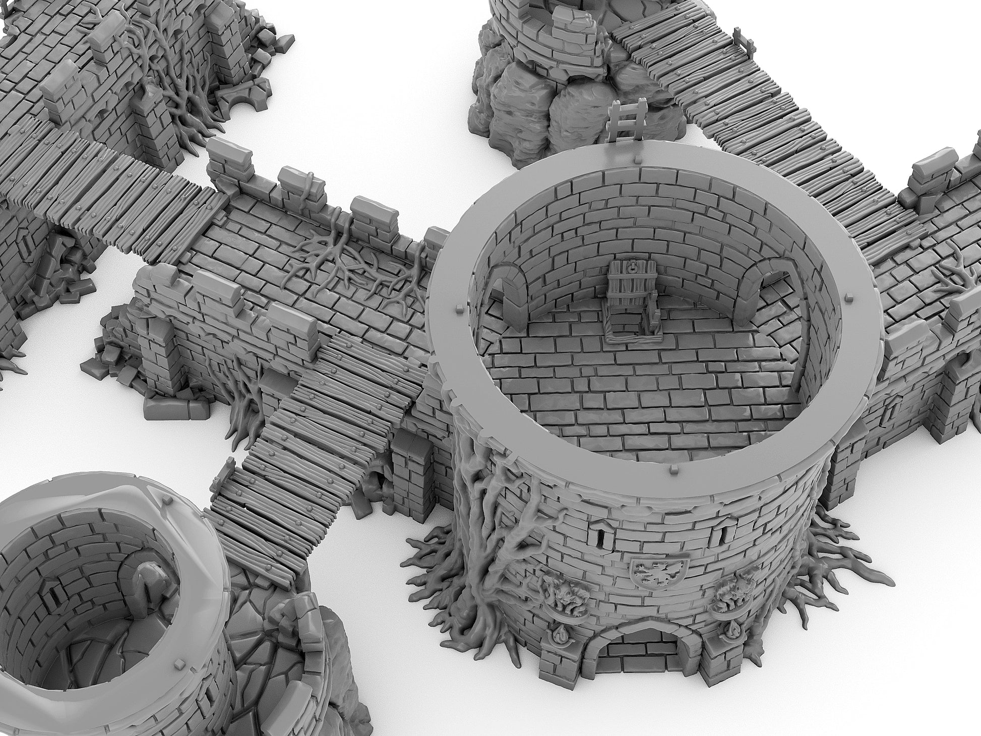 Bring your battlefield to life with this stunning Ruined Castle terrain set by Jesús. Designed for fantasy and historical wargaming, it delivers dramatic line-of-sight, immersive detail, and cinematic presence on any tabletop. Crumbling walls, battle-scarred stonework, and a versatile layout make it perfect for sieges, skirmishes, and epic last stands — a stunning centerpiece that adds a sense of ancient legend to every battle. Like all our designs, it prints on your FDM printer without the need for supports. Perfect for 28 to 32 mm figures.